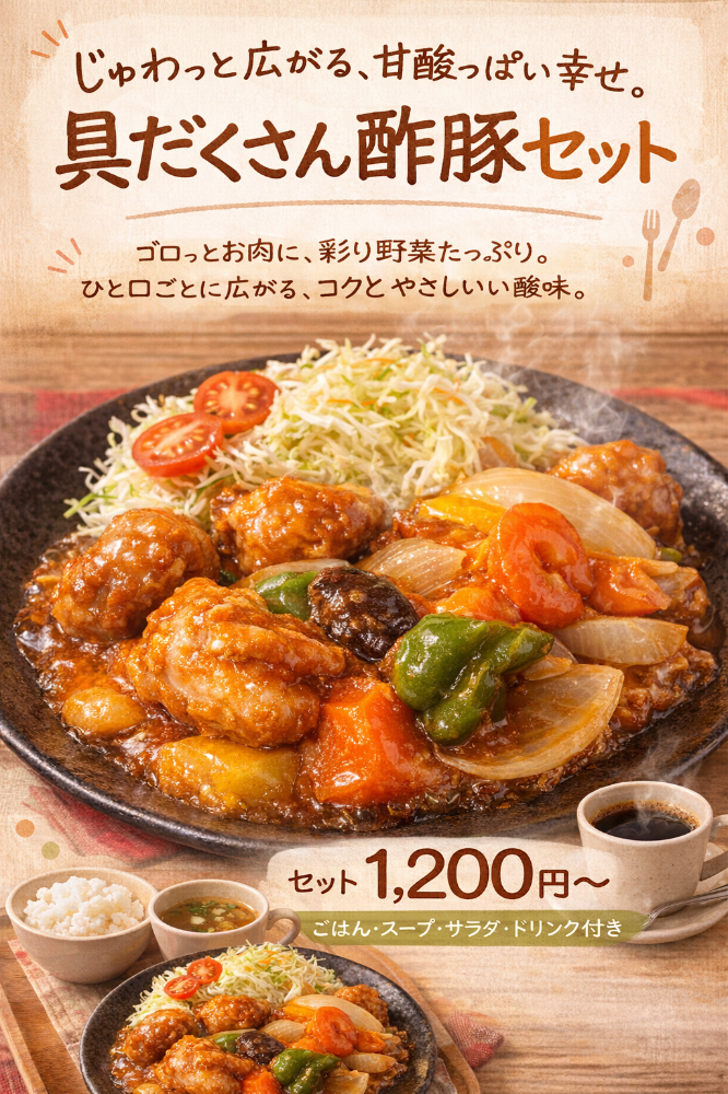 具だくさん 酢豚セット ご用意しました。